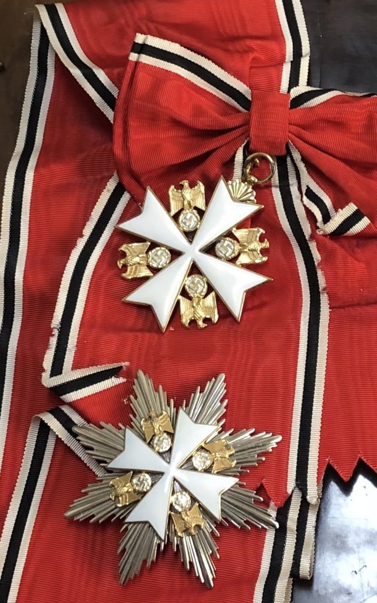 Onorificenza di Gran Croce dell’Ordine dell’Aquila Tedesca conferita insieme a molte altre onorificenze a un importante Ministro nel Governo Mussolini.