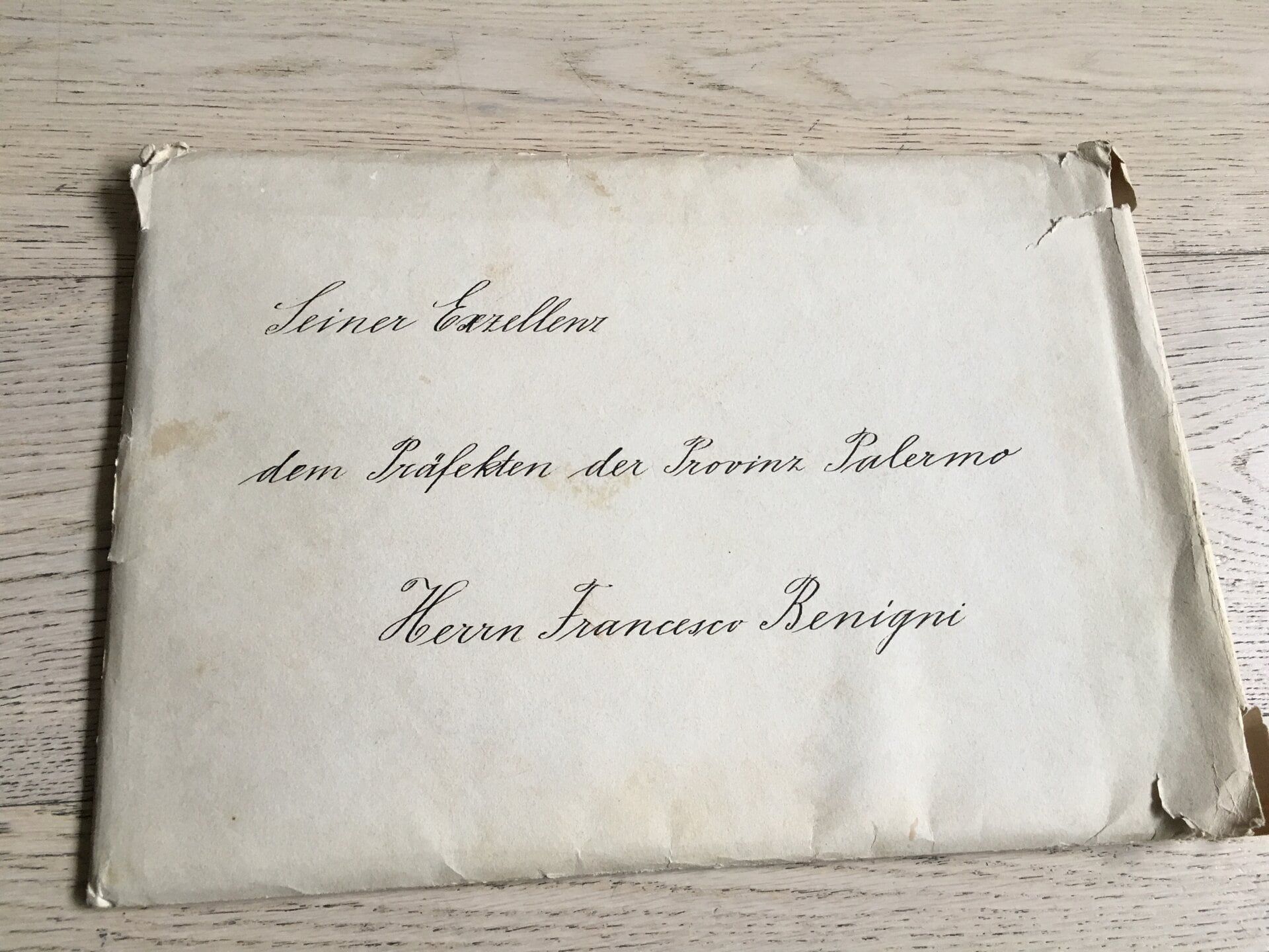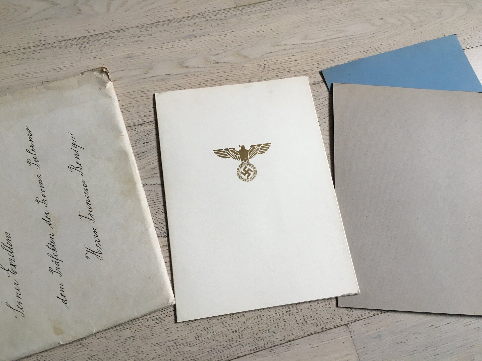 Attestato di conferimento e busta di Croce di Grande Ufficiale dell’Ordine dell’Aquila Tedesca.
